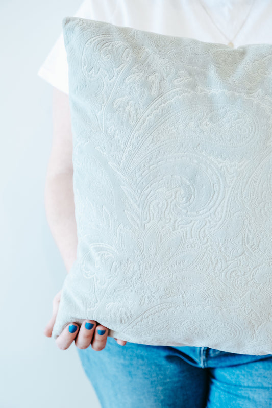 Embrace the captivating textures of Aurora, where intricate paisley patterns and subtle ripples add depth and dimension to your home décor. Handcrafted from richly textured fabrics, each cushion invites exploration with every touch. Deep, calming colors create a serene and inviting atmosphere. Available in 11 enchanting shades, Aurora caters to those who appreciate distinctive style and timeless design. Invest in the tactile beauty and timeless appeal of Aurora to elevate your living space.