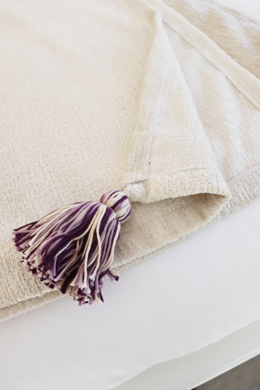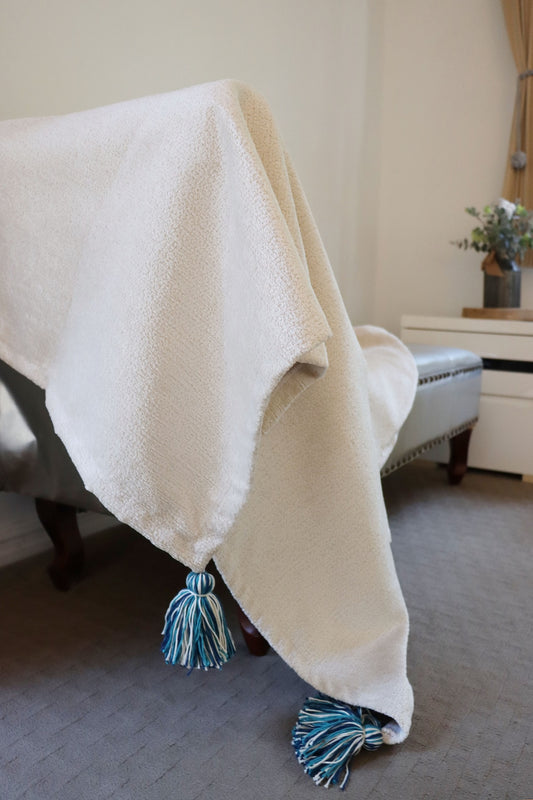 The warmth and weight of plush chenille, with colourful handmade tassels of each corner! Soft, luxurious and yet still fun.