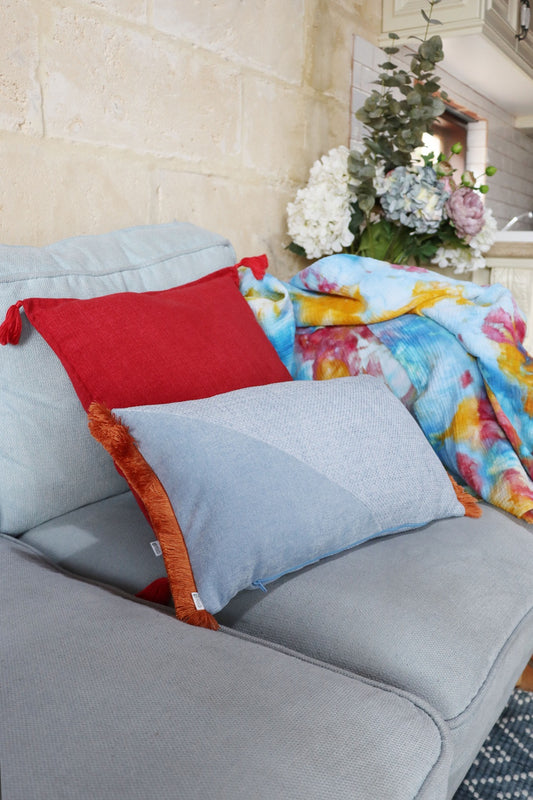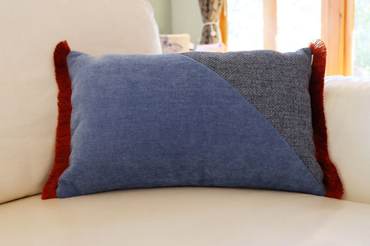 Demin - Oblong Cushion Cover with Cotton Fringe