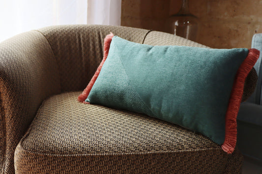 Emerald - Oblong Cushion Cover with Cotton Fringe
