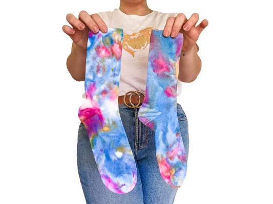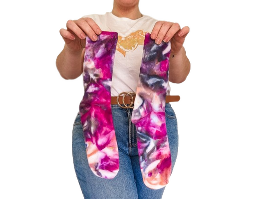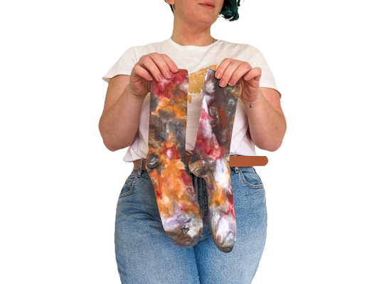 Step into a world of ultimate comfort and style with our ice-dyed bamboo socks, shirts, and hoodies! Each piece is a hand-dyed cosy masterpiece, ensuring you not only look good but feel fantastic 💕