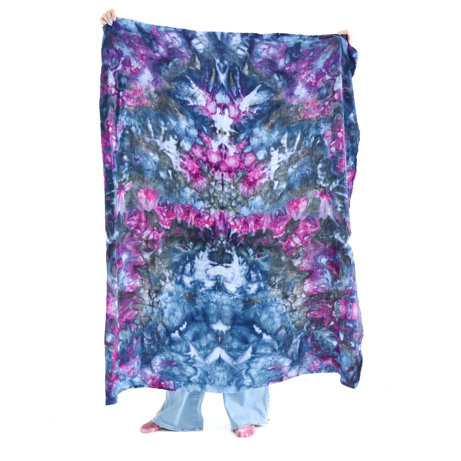 The breathable cotton fabric is gentle on your skin, perfect for year-round use and is as comfortable as it is eye-catching. Whether you're seeking a gift for a friend, a statement piece for your living room or a cosy companion for movie nights, our ice dyed cotton throws add a touch of whimsy and comfort to any space.